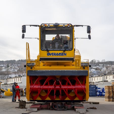 – Dette er verdens største og kraftigste kraftigste flyplassnøfreser, forteller Stein Erik Pettersen, Key Account Manager i Øveraasen. Maskinen det er snakk om er en Gjøvik-produsert TV 2100 selvgående snøfreser med oppgradert motor.